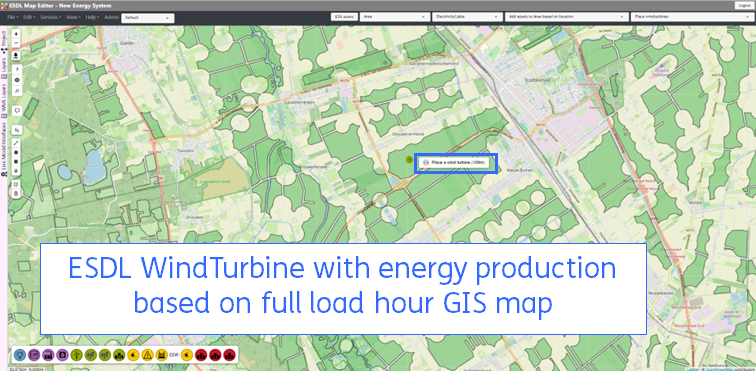 Een ander voorbeeld betreft het toevoegen van wind turbines aan een ESDL energiesysteem beschrijving, waarbij de geproduceerde hoeveelheid energie berekend wordt gebruikmakend van een kaartlaag met locatie specifieke vollasturen voor wind op land.