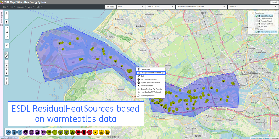 • De tweede mogelijkheid is om alle data te verzamelen voor een specifiek gebied (aangegeven met de polygoon vorm van het betreffende gebied). Een voorbeeld hiervan is om informatie over alle restwarmtebronnen binnen de gemeentegrenzen van Rotterdam te verzamelen en terug te geven als een lijst van ESDL objecttype ResidualHeatSource, waarbij relevante attributen vertaald worden vanuit de data.